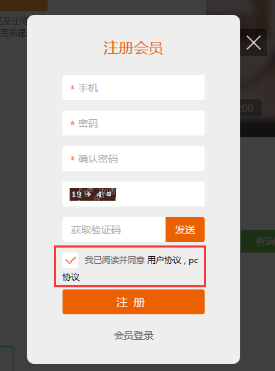 使用注册协议,会员在注册界面必须勾选注册协议,方可注册成功。(协议建议文字在1万以内)