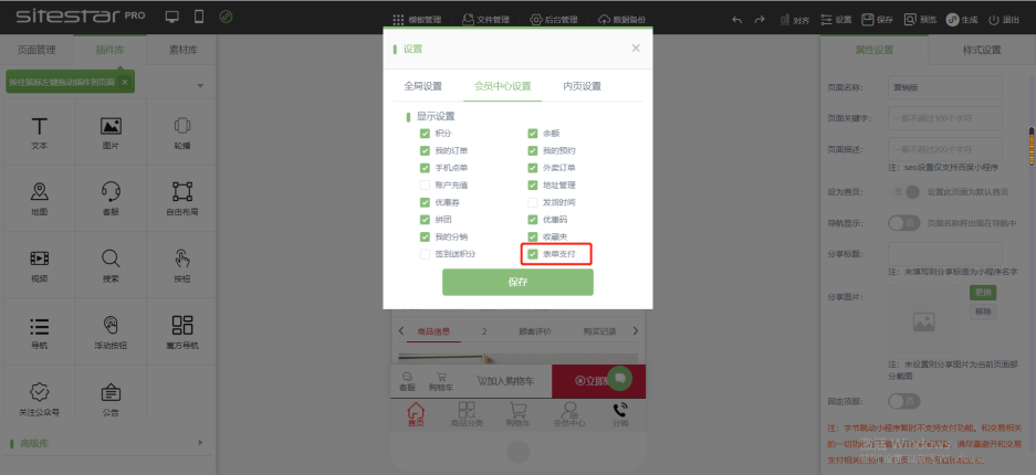 小程序端  建站前台:“设置” — “会员中心”— 勾选“表单支付”后,在会员中心显示“表单支付”即可查看支付的表单信息。